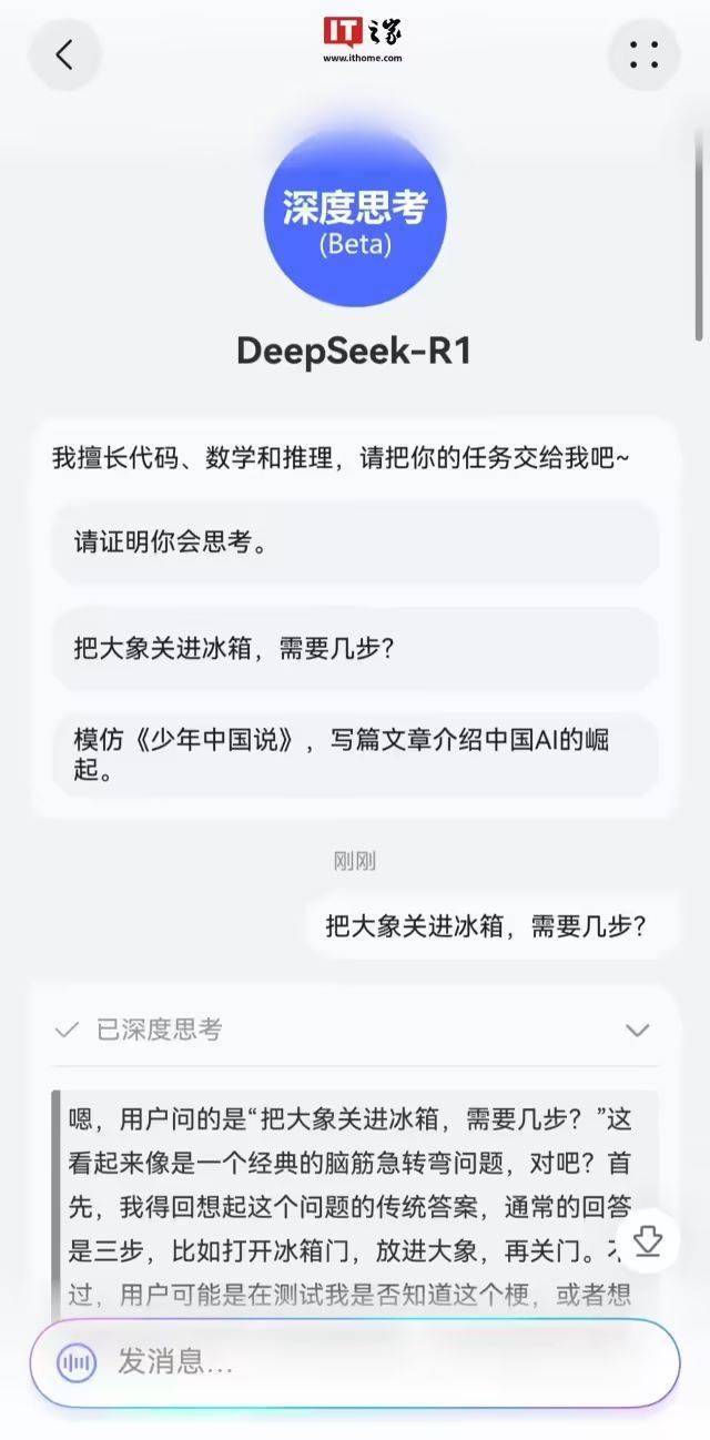 还有中国电信宣布,天翼云成为国内最早支持 DeepSeek-R1 模型的云服务商之一,用户可在天翼云智算产品体系 —— 息壤-科研助手、天翼 AI 云电脑、魔乐社区、“息壤”智算平台、GPU 云主机 / 裸金属开启智能新体验。