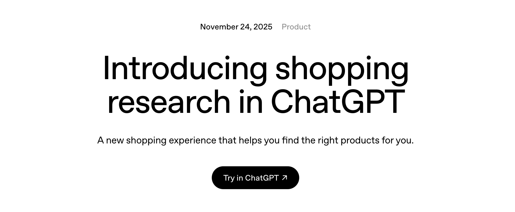 OpenAI宣布推出了购物研究功能,它会帮你找到合适的产品。你无需在数十个网站中费力筛选,只需描述你想要的东西——比如“为小公寓找最安静的无线手持吸尘器”“帮我在这三辆自行车中做选择”——它会在互联网上深入研究,查阅优质来源,并借助ChatGPT从过往对话和你的ChatGPT记忆中对你形成的了解,在几分钟内生成一份个性化的买家指南。