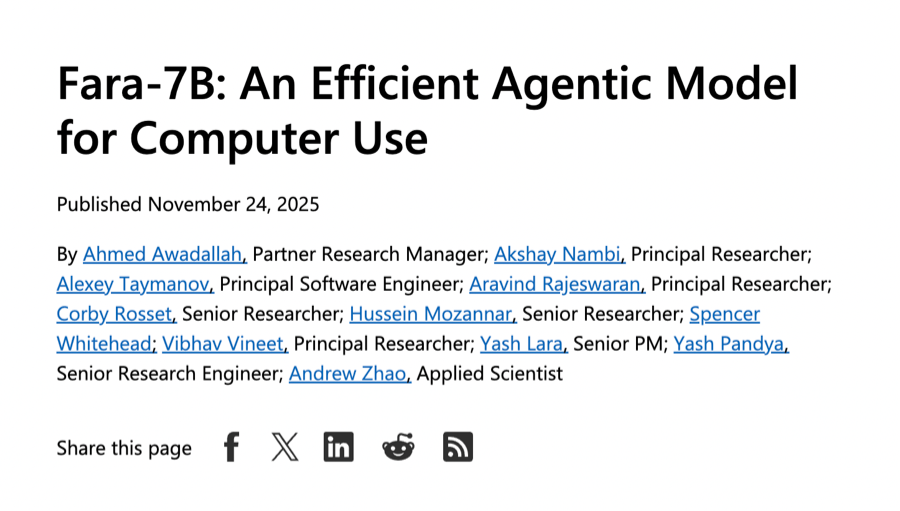 美国当地时间11月24日,微软宣布推出FARA-7B,首款专为计算机使用而设计的智能体小型语言模型。据称,与生成基于文本响应的传统聊天模型不同,像Fara-7B这样的计算机使用智能体(CUA)模型会利用鼠标和键盘等计算机接口,代表用户完成任务。Fara-7B仅70亿参数,却在同规模级别中实现了先进的性能,且能与那些依赖于提示多个大型模型、规模更大且资源消耗更多的智能体系统相抗衡。Fara-7B的小巧体型使其能够直接在设备上运行CUA模型。Fara-7B是一个实验性版本,旨在邀请社区进行实际探索并提供反馈。