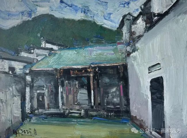 黄阿忠的风景油画始终散发着独有的艺术韵味,在东西方美学的交融中构建出静谧而深邃的精神疆域。他以从容的笔触捕捉自然与人文景致的精髓,摒弃了刻意的戏剧化表达,却让每一幅作品都成为承载情感与哲思的载体,于平实中见真趣,于细微处蕴诗情。