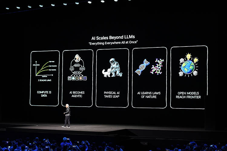 详细来看,今天主题演讲的内容主要揭示了人工智能产业的根本性变革,首先是代理式系统崛起,其次是开放模型生态爆发,最后是物理AI落地突破和产业赋能与生态协同。AI从原来的单一应用,在开源模型等前沿科技的加持下升级为了基础结构,有着驱动计算模式、产业形态与技术生态的全方位重构能力。