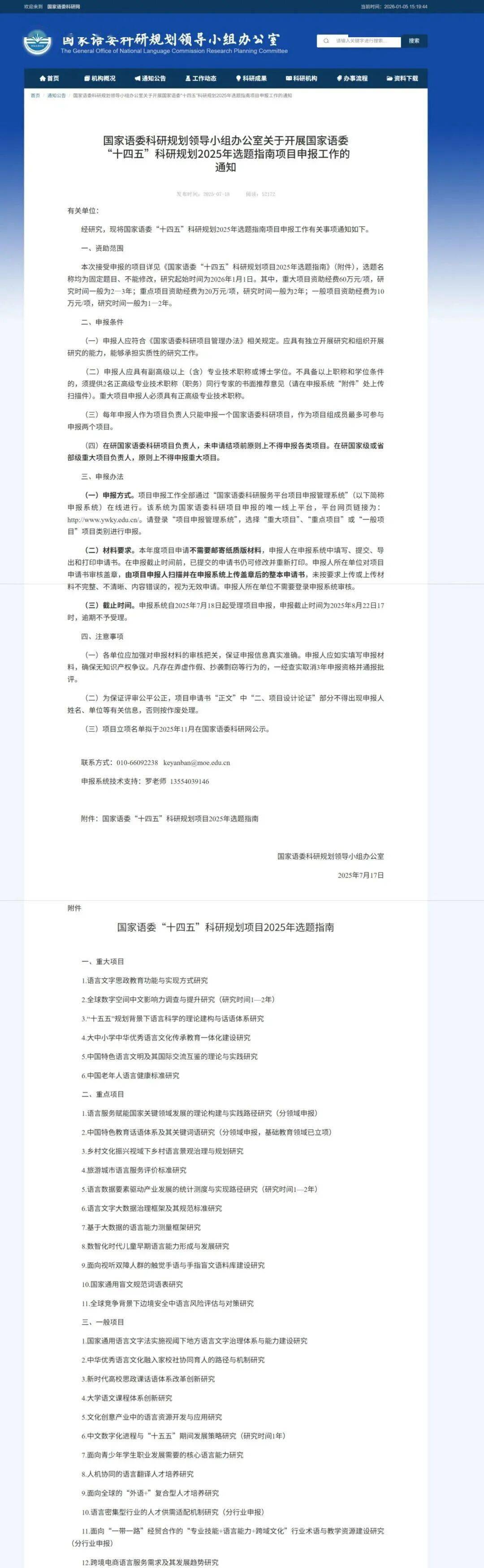 7月18日,国家语言文字“十四五”科研规划2025年选题指南正式发布,围绕数字中文建设、语言科技发展等领域,设立重大项目“全球数字空间中文影响力调查与提升研究”、重点项目“语言数据要素驱动产业发展的统计测度与实现路径研究”“面向视听双障人群的触觉手语与手指盲文语料库建设研究”、一般项目“中文数字化进程与‘十五五’期间发展策略研究”等选题,吸引2500多个团队申报。11月28日,国家语言文字科研机构2025年工作会议召开,会议强调,国家语言文字科研机构要坚持战略牵引、AI赋能,发挥语言聚焦高价值领域全局赋能经济社会的功能作用。