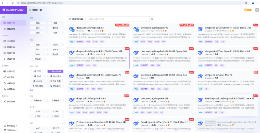 硅基流动和华为云团队联合首发并上线基于华为云昇腾云服务的DeepSeekR1/V3,推理服务目前支持V3和R1大模型,以及多款R1蒸馏小模型。